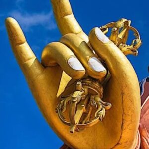 * Padmasambhava, ook wel de Kostbare Meester of Goeroe Rinpoche genoemd, is de stichter van het Tibetaanse boeddhisme en wordt beschouwd als de boeddha van onze tijd. Er wordt gezegd dat hij opmerkte: “Het lijkt op mij” toen hij het beeld in het Samye-klooster in Tibet zag, dat in de achtste eeuw werd gemaakt, waarna hij het beeld zegende en zei: “Nu is het hetzelfde als ik”.